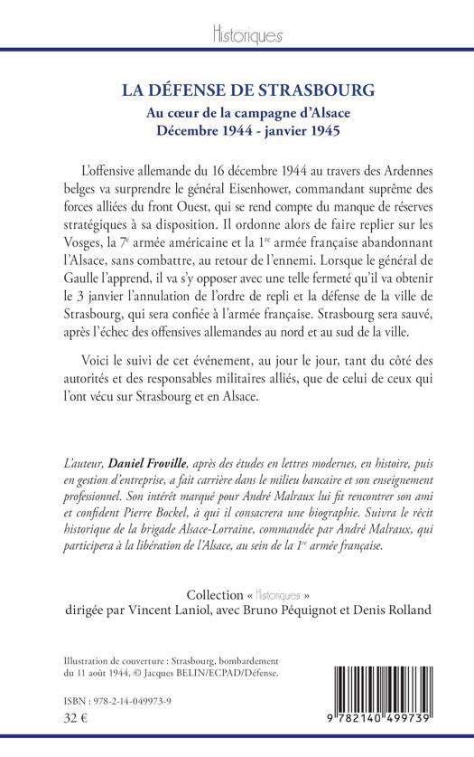 L’offensive allemande du 16 décembre 1944 au travers des Ardennes belges va surprendre le général Eisenhower, commandant suprême des forces alliées du front Ouest, qui se rend compte du manque de réserves stratégiques à sa disposition. Il ordonne alors de faire replier sur les Vosges, la 7e armée américaine et la 1re armée française abandonnant l’Alsace, sans combattre, au retour de l’ennemi. Lorsque le général de Gaulle l’apprend, il va s’y opposer avec une telle fermeté qu’il va obtenir le 3 janvier l’annulation de l’ordre de repli et la défense de la ville de Strasbourg, qui sera confiée à l’armée française. Strasbourg sera sauvé, après l’échec des offensives allemandes au nord et au sud de la ville.