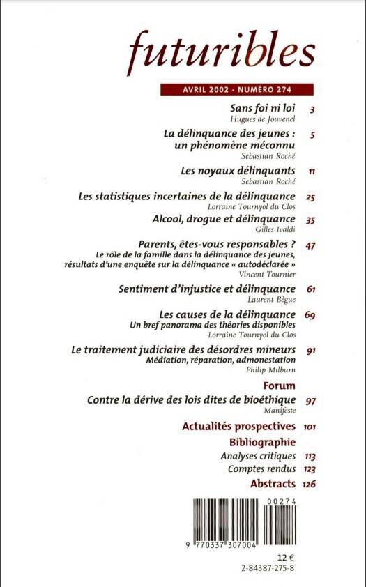La délinquance des jeunes : un phénomène méconnu ROCHÉ Sebastian
