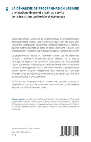 Cet ouvrage explore l’urbanisme de projet en mettant en avant la démarche de programmation urbaine, son évolution historique et son rôle crucial dans l’urbanisme stratégique et opérationnel. En mettant l’accent sur la nécessité pour les maîtres d’ouvrage de poser les bonnes questions, il clarifie leurs responsabilités et celles des autres parties prenantes, y compris les citoyens. La programmation urbaine est présentée comme une clé essentielle, facilitant la réflexion et la prise de décision éclairée. Tout au long de l’ouvrage, en exposant les tenants et aboutissants de cette pratique, l’auteur souligne son importance pour améliorer la qualité de vie urbaine et stimuler le développement local. Il démontre comment la programmation urbaine devient un pilier indispensable pour répondre aux transitions contemporaines, en redéfinissant l’urbanisme et en tissant des liens entre acteurs, territoires et aménagements. En faisant de la programmation urbaine une pratique courante et indépendante, nous pourrons mieux nous ancrer dans une conduite éclairée des opérations d’aménagement urbain.