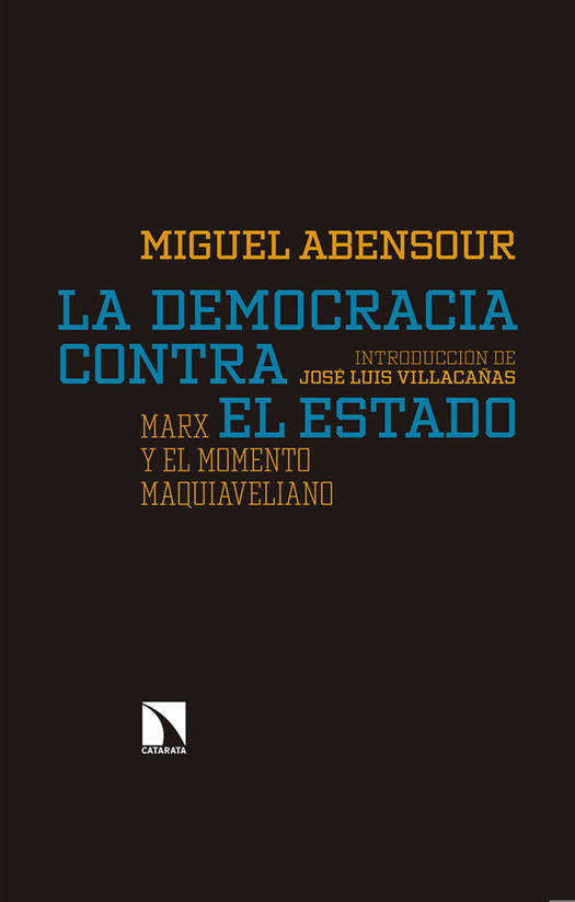 El autor, ya fallecido, trata, frente a la concepción de la democracia estatal o del Estado democrático, nombrar y redefinir una de las figuras posibles de esta oposición: la democracia insurgente, anárquica, para devolver a la sociedad civil el papel de comunidad política del que ha sido desposeída. Abensour analiza la filosofía del Estado de Hegel, y la del joven Marx cuando formulaba la oposición entre democracia y Estado. Referente intelectual, dirigió la prestigiosa colección "Critique de la politique" en la editorial Payot-Rivages, que contribuyó a la divulgación del pensamiento de la Escuela de Frankfurt en Francia.