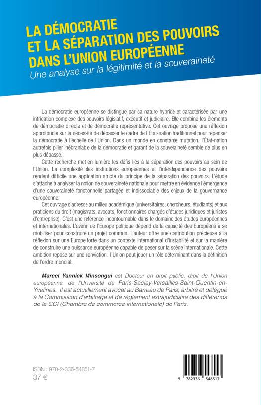 La démocratie européenne se distingue par sa nature hybride: une intrication complexe des pouvoirs législatif, exécutif et judiciaire. Elle combine les éléments de démocratie directe et de démocratie représentative. Cet ouvrage propose une réflexion approfondie sur la nécessité de dépasser le cadre de l'État-nation traditionnel pour repenser la démocratie à l'échelle de l'Union. Dans un monde en constante mutation, l'État-nation garant de la démocratie et de la souveraineté semble de plus en plus dépassé. Cette recherche met en lumière les défis liés à la séparation des pouvoirs au sein de l'Union. La complexité des institutions et l'interdépendance des pouvoirs rendent difficile une application stricte de ce principe de séparation. À travers l'examen de la souveraineté nationale, cette étude met en évidence l'émergence d'une souveraineté fonctionnelle partagée, indissociable des enjeux de la gouvernance européenne. L'avenir de l'Europe politique dépend de la capacité des Européens à se mobiliser pour construire un projet commun. Dans ce cadre, l'auteur offre une contribution précieuse en vue d'une Europe forte capable de peser dans un contexte international d'instabilité.