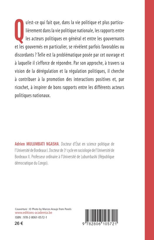 Ce livre explique la dérégulation et la régulation politique par des interactions entre les acteurs macropolitiques, entre les acteurs micropolitiques, entre les acteurs macropolitiques et les acteurs micropolitiques d'une part, par des interactions entre les acteurs politiques et les éléments ou facteurs liés à l'environnement national et à l'environnement international, d'autre part.