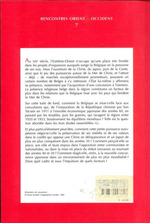 Au XIXème siècle, l'Extrême-Orient n'occupe qu'une place très limitée dans les projets d'expansion auxquels songe la Belgique en la personne de ses rois. Mais l'ouverture de la Chine, du Japon, puis de la Corée, ainsi que le jeu des puissances autour de la Mer de Chine, et l'attrait - déjà - de marchés exceptionnellement prometteurs, pousssent un certain nombre de Belges à s'y intéresser.