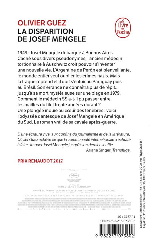 1949 : Josef Mengele débarque à Buenos Aires. Caché sous divers pseudonymes, l'ancien médecin tortionnaire à Auschwitz croit pouvoir s'inventer une nouvelle vie. L'Argentine de Perón est bienveillante, le monde entier veut oublier les crimes nazis. Mais la traque reprend et il doit s'enfuir au Paraguay puis au Brésil. Son errance ne connaîtra plus de répit... jusqu'à sa mort mystérieuse sur une plage en 1979.