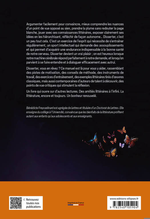 Argumenter facilement pour convaincre, mieux comprendre les nuances d’un point de vue opposé au sien, prendre la plume sans redouter la page blanche, jouer avec ses connaissances littéraires, exposer clairement ses idées en les hiérarchisant, réfléchir de façon autonome… Disserter, c’est un peu tout cela. C’est un exercice de l’esprit qui nécessite de s’entraîner régulièrement, un sport intellectuel qui demande des assouplissements et qui permet d’acquérir une endurance indispensable à la bonne santé de notre cerveau. Disserter devient un vrai plaisir ; on est heureux lorsque notre machine cérébrale répond parfaitement à notre demande, et lorsqu’on parvient à se faire entendre et à dialoguer efficacement avec autrui.
