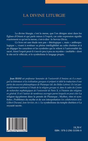 La divine liturgie, c'est la messe, que l'on désigne ainsi dans les Eglises d'Orient. Ce livre est une étude anthropologique , visant à restituer sa pleine intelligibilité au culte chrétien et à en dégager les caractères et les symboles qui le relient à l'universalité du sacré.
