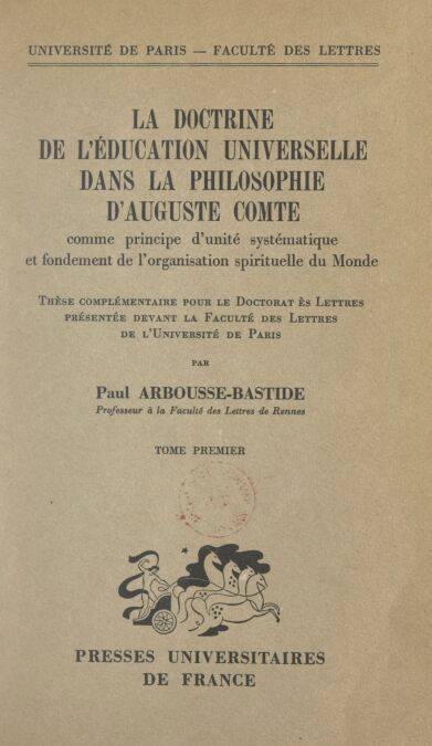 La doctrine de l'éducation universelle dans la philosophie d'Auguste Comte comme principe d'unité systématique et fondement de l'organisation spirituelle du monde (1)