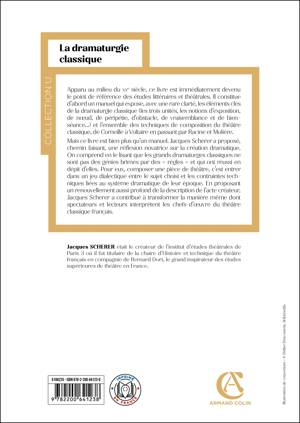 Apparu au milieu du XXe siècle, ce livre est immédiatement devenu le point de référence des études littéraires et théâtrales. Il constitue d’abord un manuel qui expose, avec une rare clarté, les éléments clés de la dramaturgie classique (les trois unités, les notions d’exposition, de nœud, de péripétie, d’obstacle, de vraisemblance et de bienséance...) et l’ensemble des techniques de composition du théâtre classique, de Corneille à Voltaire en passant par Racine et Molière.