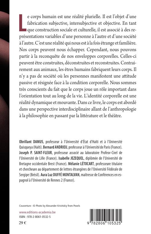 La réalité corporelle est énigmatique. Des auteurs d'Haïti, du Brésil, de France et du Canada montrent dans leurs travaux respectifs que l'être humain n'est pas le produit de son corps, mais l'inverse. Nous avons retenu une dizaine de textes où la posture interdisciplinaire adoptée par la majorité des contributeurs et contributrices leur a permis de sonder le corps en tant que construction sociale et culturelle.