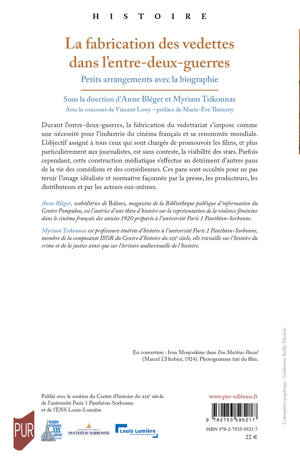 Durant l’entre-deux-guerres, la fabrication du vedettariat s’impose comme une nécessité pour l’industrie du cinéma français et sa renommée mondiale. L’objectif assigné à tous ceux qui sont chargés de promouvoir les films, et plus particulièrement aux journalistes, est sans conteste, la visibilité des stars. Parfois cependant, cette construction médiatique s’effectue au détriment d’autres pans de la vie des comédiens et des comédiennes. Ces pans sont occultés pour ne pas ternir l’image idéalisée et normative façonnée par la presse, les producteurs, les distributeurs et par les acteurs eux-mêmes.