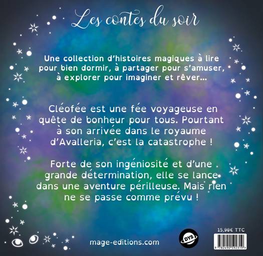 Cléofée est une fée voyageuse en quête de bonheur pour tous. Pourtant à son arrivée dans le royaume d’Avalleria, c’est la catastrophe ! Forte de son ingéniosité et d’une grande détermination, elle se lance dans une aventure périlleuse. Mais rien ne se passe comme prévu ! Album adapté aux lecteurs débutants et enfants dyslexiques.