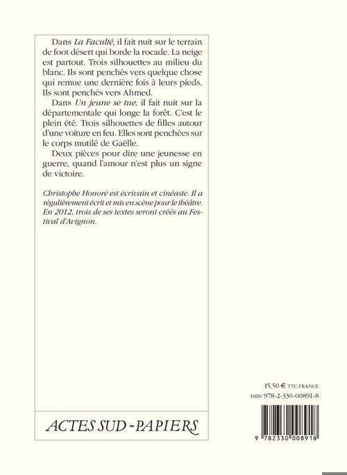 Dans «La Faculté», il fait nuit sur le terrain de foot désert qui borde la rocade. La neige est partout.Trois silhouettes au milieu du banc. Ils sont penchés vers quelque chose qui remue une dernière fois à leurs pieds. Ils sont penchés vers Ahmed.