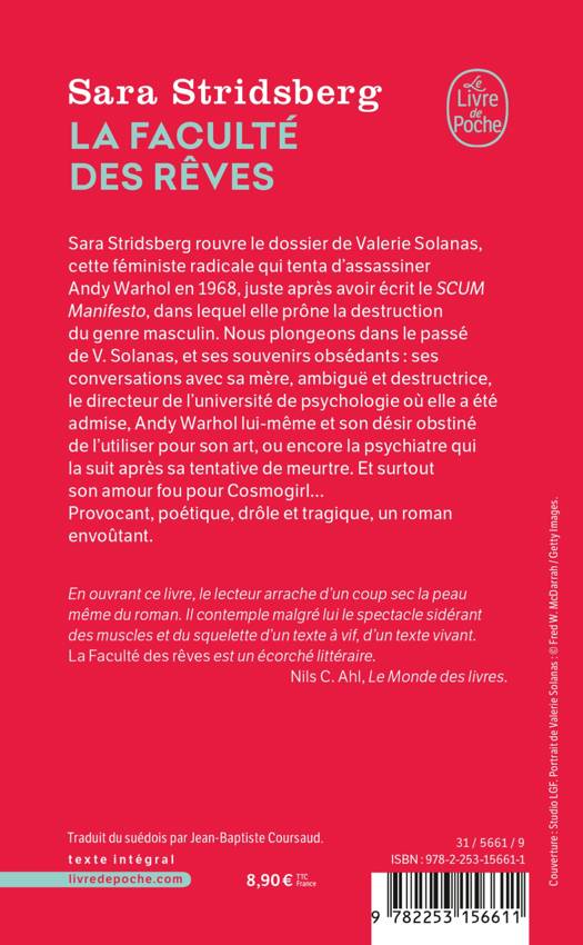 Sara Stridsberg rouvre le dossier de Valerie Solanas, cette féministe radicale qui tenta d'assassiner Andy Warhol en 1968, juste après avoir écrit le SCUM Manifesto, dans lequel elle prône la destruction du genre masculin. Nous plongeons dans le passé de V. Solanas, avec ses souvenirs obsédants : ses conversations avec sa mère, ambiguë et destructrice, le directeur de l'université de psychologie où elle a été admise, Andy Warhol lui-même et son désir obstiné de l’utiliser pour son art, ou encore la psychiatre qui la suit après sa tentative de meurtre. Et surtout son amour fou pour Cosmo girl… Provocant, poétique, drôle et tragique, un roman envoûtant.