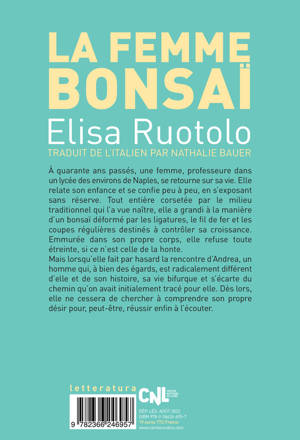 À quarante ans passés, une femme, professeure dans un lycée des environs de Naples, se retourne sur sa vie. Elle relate son enfance et se confie peu à peu, en s'exposant sans réserve. Tout entière corsetée par le milieu traditionnel qui l'a vue naître, elle a grandi à la manière d'un bonsaï déformé par les ligatures, le fil de fer et les coupes régulières destinés à contrôler sa croissance. Emmurée dans son propre corps, elle refuse toute étreinte, si ce n'est celle de la honte. Mais lorsqu'elle fait par hasard la rencontre d'Andrea, un homme qui, à bien des égards, est radicalement différent d'elle et de son histoire, sa vie bifurque et s'écarte du chemin qu'on avait initialement tracé pour elle. Dès lors, elle ne cessera de chercher à comprendre son propre désir pour, peut-être, réussir enfin à l'écouter.