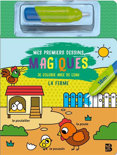 Un album de peinture que les tout-petits vont adorer !Rempli le feutre d’eau et passe sur les dessins. C’est magique, les couleurs apparaissent !Une fois que l’eau a séché, tu peux recommencer ! Et tout cela sans taches ! Le feutre est inclu avec le livre !