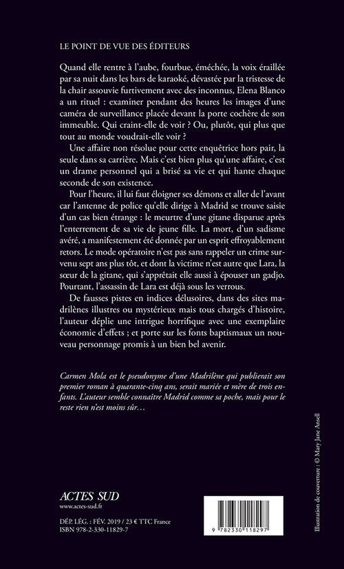 Pour l'heure, il lui faut éloigner ses démons et aller de l'avant car l'antenne de police qu'elle dirige à Madrid se trouve saisie d'un cas bien étrange : le meurtre d'une gitane disparue après l'enterrement de sa vie de jeune fille. La mort, d'un sadisme avéré, a manifestement été donnée par un esprit effroyablement retors. Le mode opératoire n'est pas sans rappeler un crime survenu sept ans plus tôt, et dont la victime n'est autre que Lara, la soeur de la gitane, qui s'apprêtait elle aussi à épouser un gadjo. Pourtant, l'assassin de Lara est déjà sous les verrous.