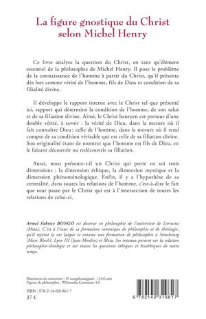 Ce livre analyse la question du Christ, en tant qu'élément essentiel de la philosophie de Michel Henry. Il pose le problème de la connaissance de l'homme à partir du Christ, qu'il présente dès lors comme vérité de l'homme, fils de Dieu et condition de sa filialité divine. Il développe le rapport interne avec le Christ tel que présent ici, rapport qui détermine la condition de l'homme, de son salut et de sa filiation divine. Ainsi, le Christ henryen est porteur d'une double vérité, à savoir: la vérité de Dieu, dans la mesure où il fait connaître Dieu; celle de l'homme, dans la mesure où il rend compte de sa condition v ritable qui est celle de sa filiation divine. Son originalité étant de montrer que l'homme est fils de Dieu, en le faisant découvrir ou redécouvrir sa filiation. Aussi, nous présente-t-il un Christ qui porte en soi trois dimensions: la dimension éthique, la dimension mystique et la dimension phénoménologique. Enfin, il y a l'hypothèse de sa centralit, dans toutes les relations de l'homme, c'est-à-dire le fait que tout passe par le Christ qui est l'intersection de toutes les relations de celui-ci.