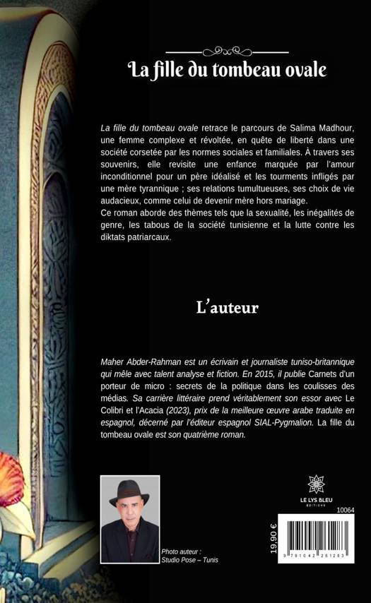 La fille du tombeau ovale retrace le parcours de Salima Madhour, une femme complexe et révoltée, en quête de liberté dans une société corsetée par les normes sociales et familiales. À travers ses souvenirs, elle revisite une enfance marquée par l'amour inconditionnel pour un père idéalisé et les tourments infligés par une mère tyrannique ; ses relations tumultueuses, ses choix de vie audacieux, comme celui de devenir mère hors mariage. Ce roman aborde des thèmes tels que la sexualité, les inégalités de genre, les tabous de la société tunisienne et la lutte contre les diktats patriarcaux.