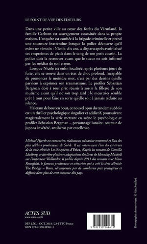 Lorsque Nicole est enfin localisée, après plusieurs jours de fuite, elle se trouve dans un état de choc profond. Incapable de prononcer le moindre mot, c'est par des dessins qu'elle parvient à exprimer son traumatisme. Le profiler Sebastian Bergman doit à tout prix réussir à sortir la fillette de son mutisme avant qu'il ne soit trop tard : le meurtrier semble prêt à tout pour faire en sorte qu'elle soit à jamais réduite au silence.