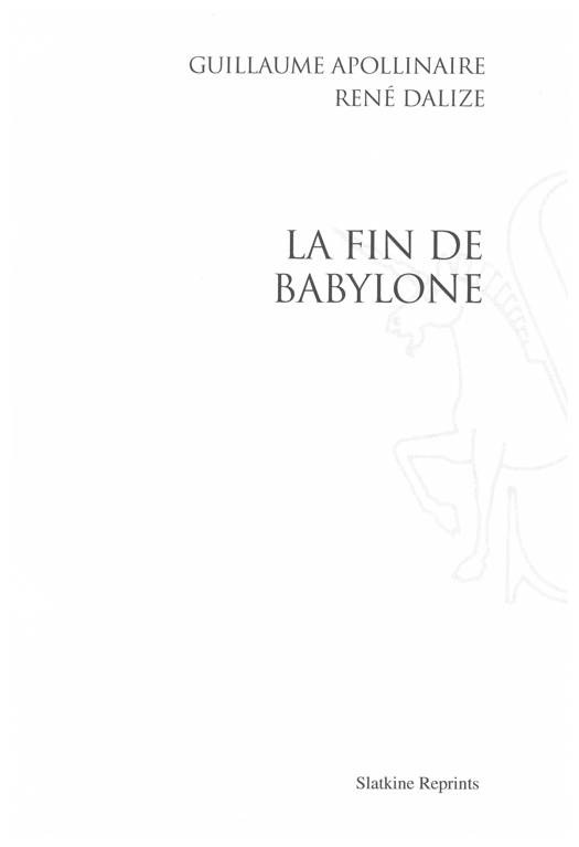 « Il apparaît ainsi que La Fin de Babylone, sans nulle prétention littéraire, nous présente un excellent exercice du poète en liberté et qui plus d’une fois se pastiche lui-même. Loin de n’avoir fait qu’ajouter quelques plaisanteries à une œuvre qui aurait été écrite par Dalize et quelques autres, Apollinaire a donné son esprit et sa griffe à l’ouvrage en se jouant : s’il n’a pas fait tout le travail, du moins l’y rencontre-t-on à chaque instant – c’est à raison qu’il l’a signée. » Jean Burgos in Dictionnaire Apollinaire.