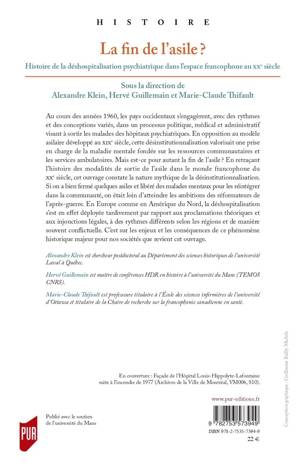 Au cours des années 1960, les pays occidentaux s’engagèrent, avec des rythmes et des conceptions variés, dans un processus politique, médical et administratif visant à sortir les malades des hôpitaux psychiatriques. En opposition au modèle asilaire développé au XIXe siècle, cette désinstitutionnalisation valorisait une prise en charge de la maladie mentale fondée sur les ressources communautaires et les services ambulatoires. Mais est-ce pour autant la fin de l’asile ? En retraçant l’histoire des modalités de sortie de l’asile dans le monde francophone du XXe siècle, cet ouvrage constate la nature mythique de la désinstitutionnalisation. Si on a bien fermé quelques asiles et libéré des malades mentaux pour les réintégrer dans la communauté, on était loin d’atteindre les ambitions des réformateurs de l’après-guerre. En Europe comme en Amérique du Nord, la déshospitalisation s’est en effet déployée tardivement par rapport aux proclamations théoriques et aux injonctions légales, à des rythmes différents selon les régions et de manière souvent conflictuelle. C’est sur les enjeux et les conséquences de ce phénomène historique majeur pour nos sociétés que revient cet ouvrage.