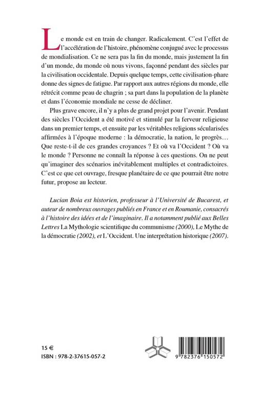 Le monde est en train de changer. Radicalement. C’est l’effet de l’accélération de l’histoire, phénomène conjugué avec le processus de mondialisation. Ce ne sera pas la fin du monde, mais justement la fin d’un monde, du monde où nous vivons, façonné pendant des siècles par la civilisation occidentale. Depuis quelque temps, cette civilisation-phare donne des signes de fatigue. Par rapport aux autres régions du monde, elle rétrécit comme peau de chagrin ; sa part dans la population de la planète et dans l’économie mondiale ne cesse de décliner. Plus grave encore, il n’y a plus de grand projet pour l’avenir. Pendant des siècles l’Occident a été motivé et stimulé par la ferveur religieuse dans un premier temps, et ensuite par les véritables religions sécularisées affirmées à l’époque moderne : la démocratie, la nation, le progrès… Que reste-t-il de ces grandes croyances ? Et où va l’Occident ? Où va le monde ? Personne ne connaît la réponse à ces questions. On ne peut qu’imaginer des scénarios inévitablement multiples et contradictoires. C’est ce que cet ouvrage, fresque planétaire de ce que pourrait être notre futur, propose au lecteur.