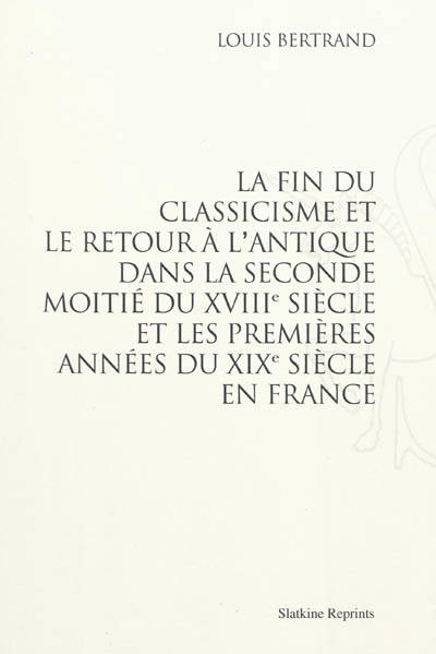 Etude du retour à l'antique qui s'est propagé dans la littérature et dans l'art à partir de la seconde moitié du XVIIIe siècle. Ce mouvement a été favorisé par le paganisme croissant des moeurs et dans la disparition ou l'affaiblissement de l'idée religieuse