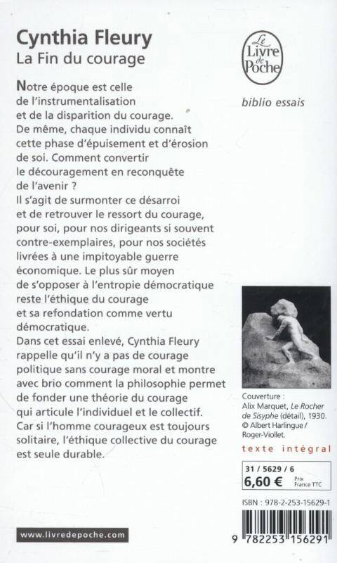 Dans cet essai qui a beaucoup été repris dans la presse, Cynthia Fleury rappelle qu'il n'y a pas de courage politique sans courage moral et montre comment la philosophie permet de fonder une théorie du courage qui articule l'individuel et le collectif. Un texte aussi passionnant à lire pour soi que pour réfléchir aux graves défis auxquels sont confrontées nos démocraties.