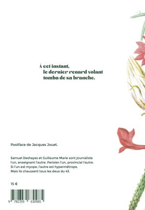 Depuis le temps que tout le monde l’annonce, voilà : c’est (enfin) La Fin du monde. Le livre de Samuel Deshayes et Guillaume Marie est un chant prophétique d’aujourd’hui, jouissif et inventif. Une danse de joie sur un volcan en train d’exploser. Partie de la banlieue sud de Paris, leur apocalypse englobe peu à peu toutes les histoires, toutes les géographies. On y croise des créatures fantastiques et immenses, une comète, une prophétesse, des lamantins. La Fin du monde, composée d’une trentaine de courts chapitres, joue des formes de la narration et l’explose avec les armes de la poésie. Deshayes et Marie reprennent des formes existantes (sonnets, sextines, versets, etc.), les détournent, en inventent de nouvelles.