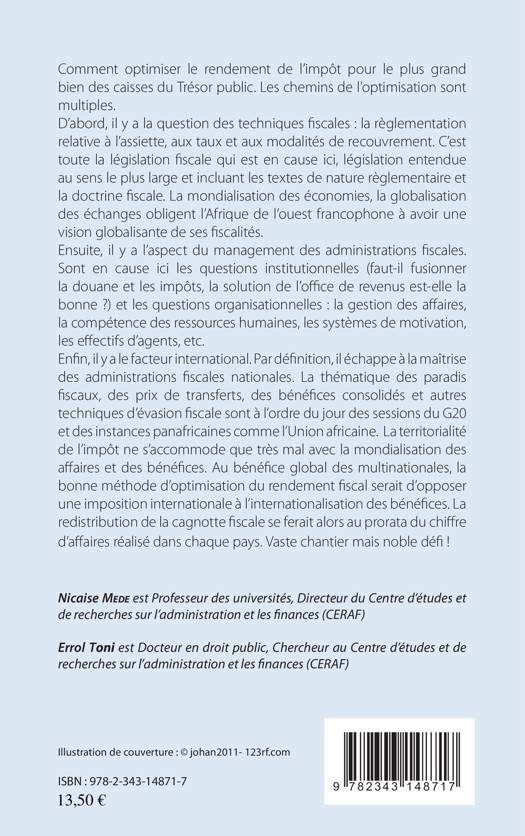Cet ouvrage examine comment l'impôt fait un bon arrimage avec les plans de développement accéléré des Etats. Il fait ressortir comment l'articulation entre les systèmes de taxation et les mécanismes productifs est réalisée. Comment l'impôt n'est pas un frein mais un adjuvant pour l'investissement, le travail productif et l'emploi sans oublier la protection de l'environnement dans une perspective de développement durable.