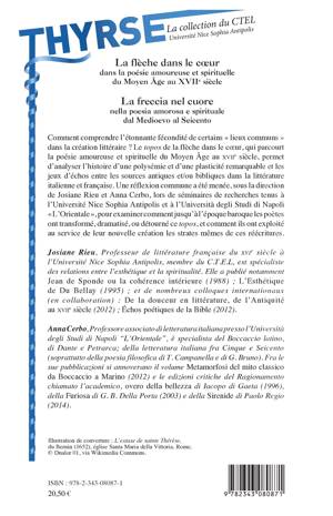 Comment comprendre l’étonnante fécondité de certains « lieux communs » dans la création littéraire ? Le topos de la flèche dans le cœur par exemple, parcourt la poésie amoureuse et spirituelle du Moyen Âge au XVIIe siècle. Une réflexion commune a été menée lors de séminaires de recherches tenus à l’Université Nice Sophia Antipolis et à l’Università degli Studi di Napoli « L’Orientale », pour examiner comment jusqu’à l’époque baroque les poètes ont transformé, dramatisé, ou détourné ce topos. (Articles en français et en italien).