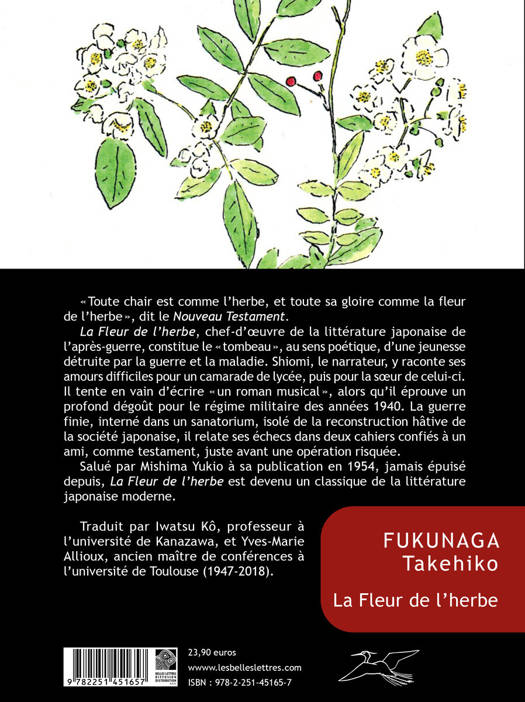 Toute chair est comme l'herbe, et toute sa gloire comme la fleur de l'herbe , dit le Nouveau Testament. La Fleur de l'herbe, chef-d'oeuvre de la litterature japonaise de l'apres-guerre, constitue le tombeau , au sens poetique, d'une jeunesse detruite par la guerre et la maladie. Shiomi, le narrateur, y raconte ses amours difficiles pour un camarade de lycee, puis pour la soeur de celui-ci. Il tente en vain d'ecrire un roman musical , alors qu'il eprouve un profond degout pour le regime militaire des annees 1940. La guerre finie, interne dans un sanatorium, isole de la reconstruction hative de la societe japonaise, il relate ses echecs dans deux cahiers confies a un ami, comme testament, juste avant une operation risquee. Salue par Mishima Yukio a sa publication en 1954, jamais epuise depuis, La Fleur de l'herbe est devenu un classique de la litterature japonaise moderne.