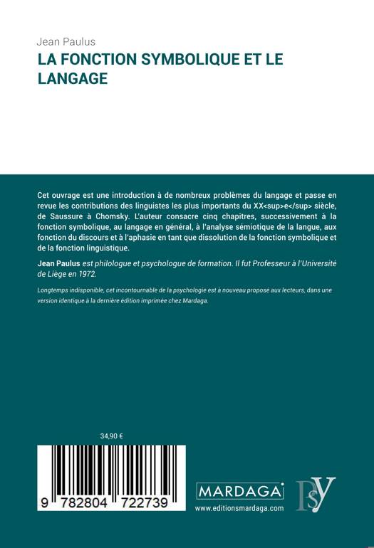 e siècle, de Saussure à Chomsky. L'auteur consacre cinq chapitres, successivement à la fonction symbolique, au langage en général, à l'analyse sémiotique de la langue, aux fonction du discours et à l'aphasie en tant que dissolution de la fonction symbolique et de la fonction linguistique.