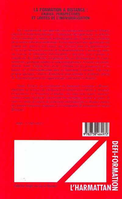 Cet ouvrage nous montre le véritable enjeu de la formation à distance: l'autonomie des apprenants, au-delà des défis économiques, sociaux et technologiques qui se profilent à l'horizon de la société éducative médiatique. L'auteur explique la complexité des problèmes d'ingénierie liés au développement de l'autonomie des apprenants adultes en milieu institutionnel. Elle nous invite à réfléchir sur les perspectives et les limites de l'individualisation dans la formation à distance.
