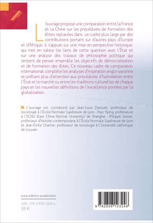 L'ouvrage propose une comparaison entre la France et la Chine sur les procédures de formation des élites replacées dans un cadre plus large par des contributions portant sur d'autres pays d'Europe et d'Afrique. Il propose un nouveau cadre de comparaison internationale qui complète les analyses d'inspiration anglo-saxonne en prêtant attention aux procédures d'hybridation entre l'État et le marché ou entre les traditions culturelles de chaque pays et les nouvelles définitions de l'excellence portées par la globalisation.