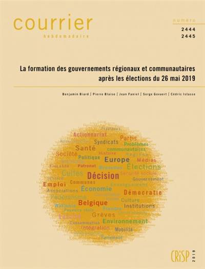 Les scrutins européen, fédéral, régionaux et communautaires tenus en Belgique le 26 mai 2019 ont donné lieu au renouvellement de chacune des assemblées parlementaires du pays, ainsi que de la représentation belge au Parlement européen. Dans la foulée, la composition de chacun des exécutifs des entités fédérées a été revue, tant en termes de couleur politique des coalitions que de personnes siégeant en leur sein. Fin 2019, en revanche, un nouveau gouvernement fédéral de plein exercice n’avait pas pu être formé. Ce Courrier hebdomadaire retrace les processus de formation des gouvernements de Région et de Communauté. Formellement, ces processus ont débuté le 27 mai, avec les consultations entamées par les partis politiques dans les différentes entités fédérées, et ont pris fin avec la prestation de serment des membres des exécutifs ainsi formés, à savoir le 17 juin pour la Communauté germanophone, le 18 juillet pour la Région bruxelloise (et les collèges des Commissions communautaires), le 13 septembre pour la Wallonie, le 17 septembre pour la Communauté française et le 2 octobre pour la Flandre. Retracer le processus de formation de chacun de ces gouvernements met en évidence à la fois l’imbrication des négociations et la stratégie des différents acteurs impliqués, y compris en termes de tempo et de priorité accordée à l’un ou à l’autre des niveaux de pouvoir. Cependant, chaque processus de formation suit également sa propre logique.