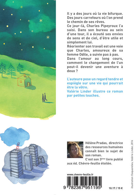 Il y a des jours où la vie bifurque. Des jours carrefours où l’on prend le chemin de ses rêves. Ce jour-là, Charles Pipeyroux l’a saisi. Dans son bureau au sein d’une tour, il a écouté ses envies de sens et de ciel, d’être utile et simplement lui. Réorienter son travail est une voie que Charles, amoureux de sa femme Odile, a suivie pas à pas. Dans l’amour au long cours, comment le changement de l’un peut-il devenir une aventure à deux ?