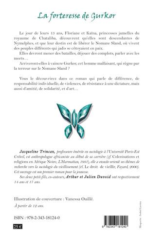Le jour de leurs 13 ans, Floriane et Kaïna, princesses jumelles du royaume de Chataliba, découvrent qu'elles sont descendantes de Nymelphes, et que leur destin est de libérer le Nomane Sland, où vivent des peuples différents qui jadis se côtoyaient en paix. Elles devront mener des batailles, déjouer des complots, parler avec les morts... Arriveront-elles à vaincre Gurkor, cet homme malfaisant, qui règne par la terreur sur le Nomane Sland ? Vous le découvrirez dans ce roman qui parle de différence, de responsabilité individuelle, de violences, de résistance à une dictature, mais aussi d'amitié, de solidarité et d'art...