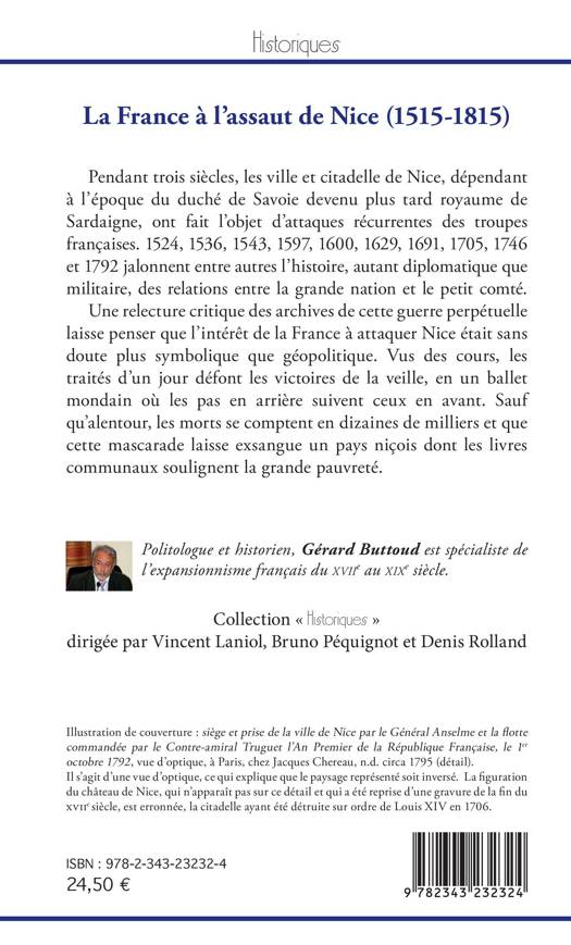 Pendant trois siècles, les ville et citadelle de Nice, dépendant à l'époque du duché de Savoie devenu plus tard royaume de Sardaigne, ont fait l'objet d'attaques récurrentes des troupes françaises. Une relecture critique des archives de cette guerre perpétuelle laisse penser que l'intérêt de la France à attaquer Nice était sans doute plus symbolique que géopolitique. Vus des cours, les traités d'un jour défont les victoires de la veille, en un ballet mondain où les pas en arrière suivent ceux en avant. Sauf qu'alentour, les morts se comptent en dizaines de milliers et que cette mascarade laisse exsangue un pays niçois dont les livres communaux soulignent la grande pauvreté.