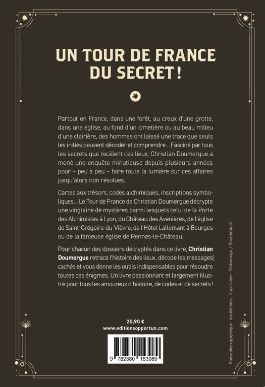 Cartes aux trésors, codes alchimiques, inscriptions symboliques… Le Tour de France de Christian Doumergue décrypte une vingtaine de mystères parmi lesquels celui de la Porte des Alchimistes à Lyon, du Château des Avenières, de l’église de Saint-Grégoire-du-Vièvre, de l’Hôtel Lallemant à Bourges ou de la fameuse église de Rennes-le-Château.