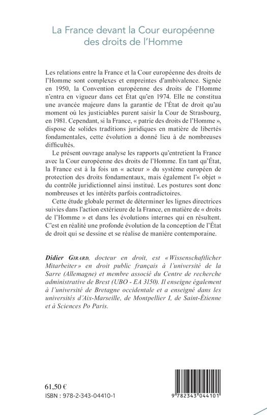 Quels rapports la France entretient-elle avec la Cour européenne des droits de l'Homme. En tant qu'Etat, la France est à la fois acteur du système européen des droits fondamentaux, mais également l'objet du contrôle institutionnel ainsi institué. Les postures sont à la fois multiples et les intérêts parfois contradictoires. Cette étude permet de déterminer les lignes directrices suivies dans l'action extérieure de la France.