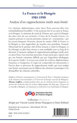 Les relations diplomatiques entre deux États peuvent-elles être irrémédiablement brouillées ? Cela aurait pu être le cas entre la France et la Hongrie. La mémoire du traité de Trianon, qui a privé la Hongrie des deux tiers de son territoire à l'issue de la Grande Guerre, est toujours présente et souvent présentée comme un « traumatisme » par les acteurs hongrois. Pourtant, durant les années 1980, la France et la Hongrie se sont rapprochées de manière sans précédent. A travers une étude des archives diplomatiques françaises et hongroises, l'auteur analyse les mécanismes à l'oeuvre dans ce processus de rapprochement inédit, qui resta malgré tout limité, notamment par la faiblesse des relations économiques et le déséquilibre des relations culturelles.