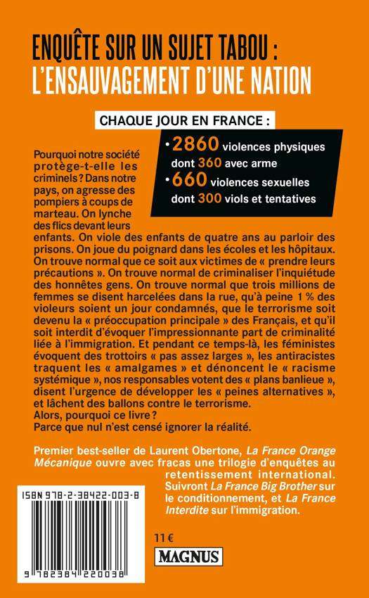 Livre au retentissement international, La France Orange Mécanique est le premier best-seller de Laurent Obertone, né en 1984, essayiste et romancier à succès, diplômé d'histoire, d'anthropologie et de journalisme