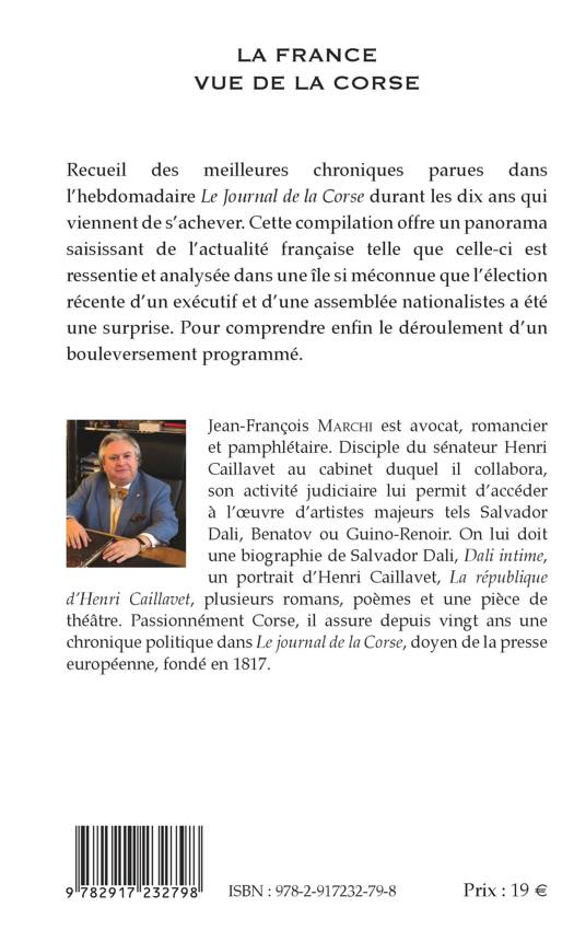 Recueil des meilleures chroniques des dix dernières années parues dans l'hebdomadaire Le Journal de la Corse, offre un panorama de l'actualité française telle que ressentie et analysée par cette île.