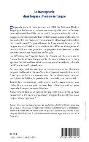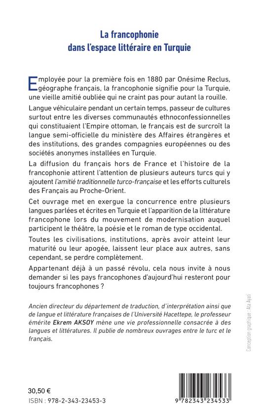 Employée pour la première fois en 1880, la francophonie signifie pour la Turquie, une vieille amitié oubliée qui ne craint pas pour autant la rouille. La diffusion du français hors de France et l'histoire de la francophonie attirent l'attention de plusieurs auteurs turcs qui y ajoutent l'amitié traditionnelle turco-française. Cet ouvrage met en exergue la concurrence entre plusieurs langues parlées et écrites en Turquie et l'apparition de la littérature francophone lors du mouvement de modernisation auquel participent le théâtre, la poésie et le roman de type occidental. Toutes les civilisations, institutions, après avoir atteint leur maturité ou leur apogée, laissent leur place aux autres, sans cependant se perdre complètement. Appartenant déjà à un passé révolu, cela nous invite à nous demander si les pays francophones d'aujourd'hui resteront pour toujours francophones ?