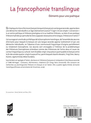Qu’implique le choix d’écrire en français lorsque le français est une langue seconde, apprise dans une démarche individuelle à un âge relativement avancé ? S’agit-il d’une simple «conversion» à un centre politique et littéraire prestigieux et à sa tradition littéraire, ou bien d’une pratique littéraire hybride qui perturbe les liens supposés nécessaires entre langue, littérature et nation ?