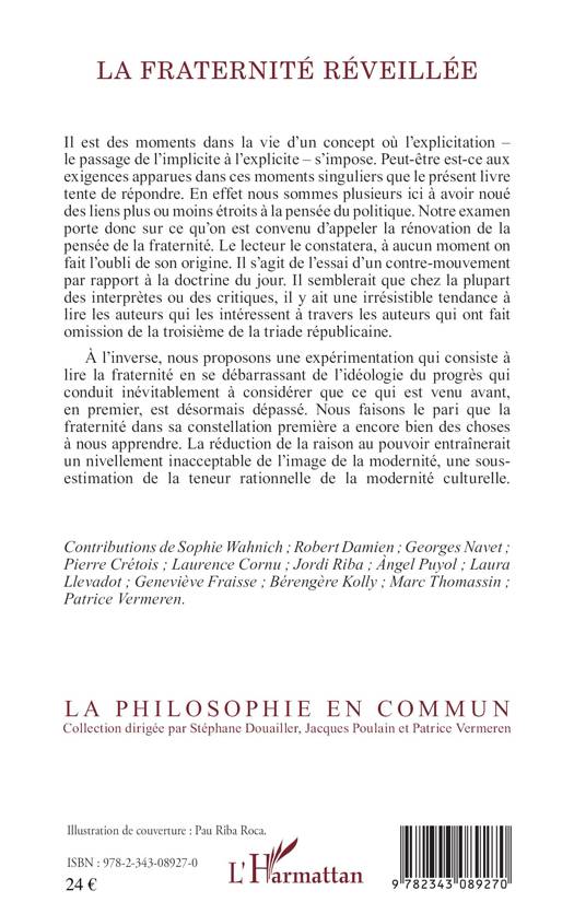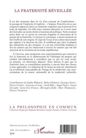 Il est des moments dans la vie d'un concept où l'explication (le passage de l'implicite à l'explicite), s'impose. Les auteurs de cet ouvrage ont noué des liens avec la pensée du politique, et leur examen porte donc sur ce qu'ils ont convenu d'appeler la rénovation de la pensée de la fraternité. Les auteurs proposent ici une expérimentation qui consiste à lire la fraternité en se débarrassant de l'idéologie du progrès et en faisant le pari que la fraternité dans sa constellation première a encore bien des choses à nous apprendre.