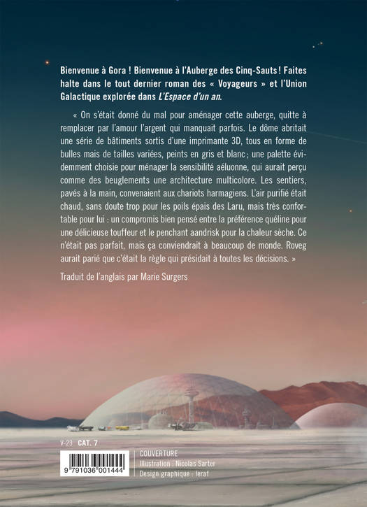 Bienvenue à Gora ! Bienvenue à l’Auberge des Cinq-Sauts ! Faites halte dans le tout dernier roman des « Voyageurs »et l’Union Galactique explorée dans L’Espace d’un an.