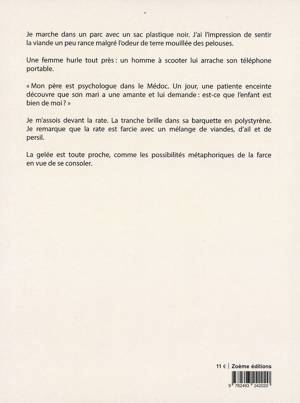 Je m'assois devant la rate. La tranche brille dans sa barquette en polystyrène. Je remarque que la rate est farcie avec un mélange de viandes, d'ail et de persil.