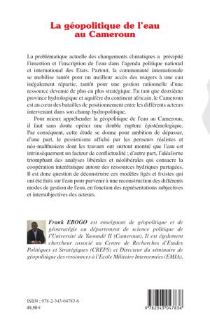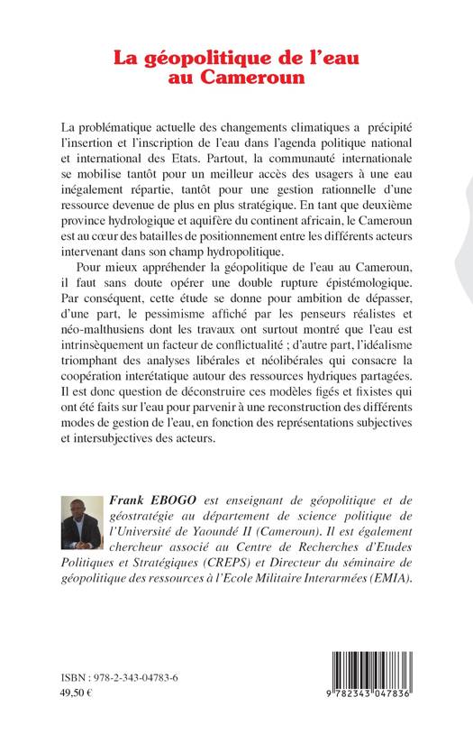 La problématique actuelle des changements climatiques a précipité l'insertion et l'inscription de l'eau dans l'agenda politique national et international des Etats. En tant que deuxième province hydrologique et aquifère du continent africain, le Cameroun est au coeur des batailles de positionnement entre les différents acteurs intervenant dans son champ hydropolitique. Il est question dans ce livre de déconstruire les modèles figés qui ont été faits sur l'eau pour parvenir à une reconstruction des différents modes de gestion de l'eau.